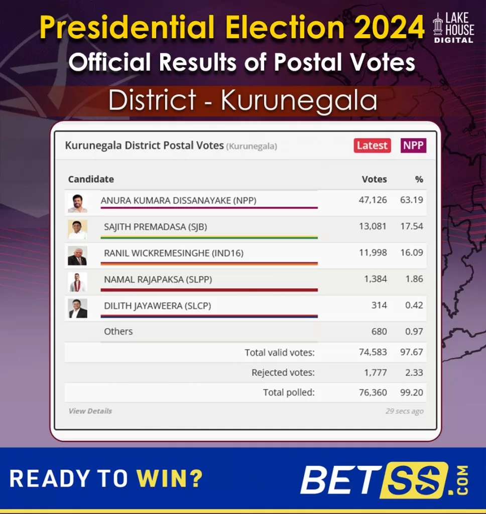 Postal vote results of Kurunegala and Jaffna Politics On Sep 21, 2024 FB IMG 1726962484318 968x1024 1 0 0 Share The post Postal vote results of Kurunegala and Jaffna appeared first on DailyNews. 0 0 Share FacebookTwitterGoogle+ReddItWhatsAppPinterestEmail