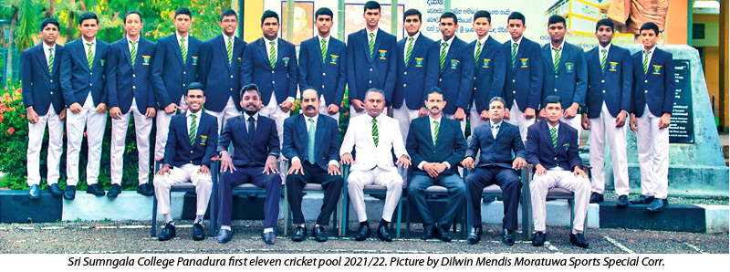 His first year in the first eleven was in 2017 as an under 15 player and passed the 150 run mark and he played the full season in the next year and collected 300 runs and he played against their arch rivals Moratu Vidyalaya in the big match and one dayer and he won the Man of the Match Award in the Big Match. In the next year he passed the 600 run mark with a century and three fifties and he was the Best Batsman in the limited over game. Due to Covid in 2020 they participated in eight matches and scored 202 runs with a century and a fifty and his school won the All Island Division Two Tier “A” title and the following year too there was a one day tournament and he scored 270 runs and he was the highest run getter in the tournament and this year he passed the 280 run mark with two fifties and a century and his school became the Division Two Champions and he was the highest run getter for the second successive year. Sumangalians played their 70 th Big Match and 29 th One Dayer against their arch rivals Moratu Vidyalaya and Big Match was drawn while the Limited Over was won by Sumangalians under Prabash Jayasekera.