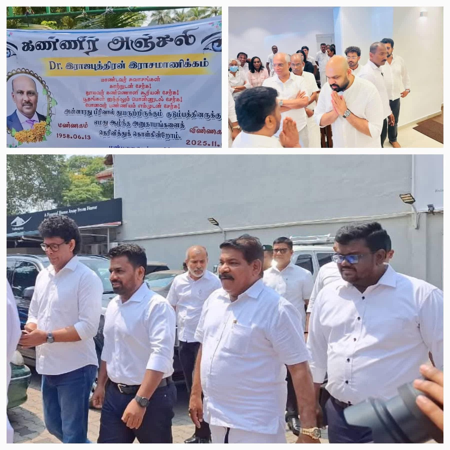 President Anura Kumara Dissanayake and several ministers of the National People’s Power (NPP) government visited the Jayaratne Respect Home in Borella to pay their last respects to Dr. Rajaputhiran Rasamanickam, the father of Batticaloa District MP Shanakiyan Rasamanickam.