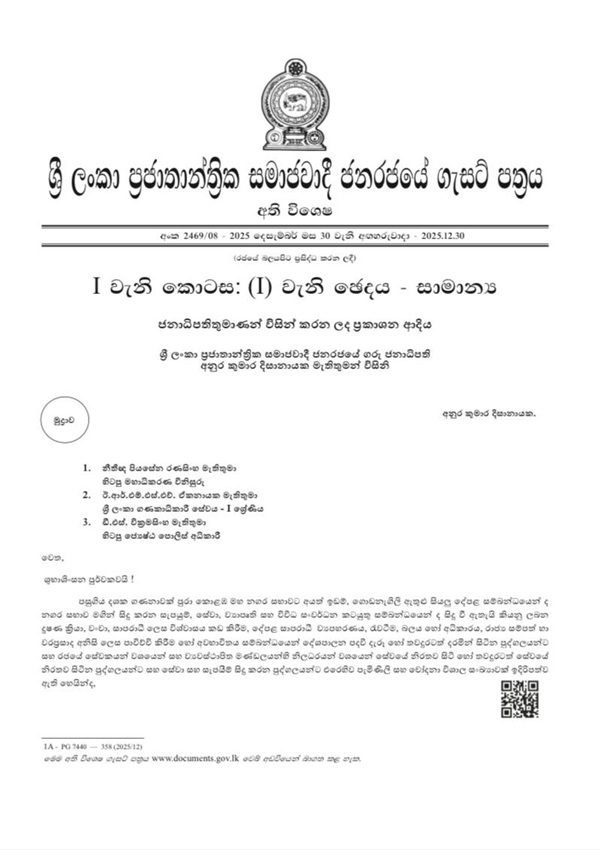 A Gazette notification, issued by the President on 30 December 2025, states that several complaints have been received regarding alleged acts of corruption and fraud, due to which the state has suffered significant losses of property and revenue, and the Colombo Municipal Council has failed to achieve its expected development goals.