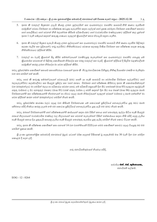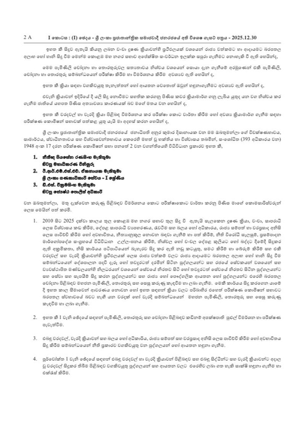 Furthermore, Attorney‑at‑Law Piyasena Ranasinghe, Former Supreme Court Judge, is appointed as Chairman of the Commission.