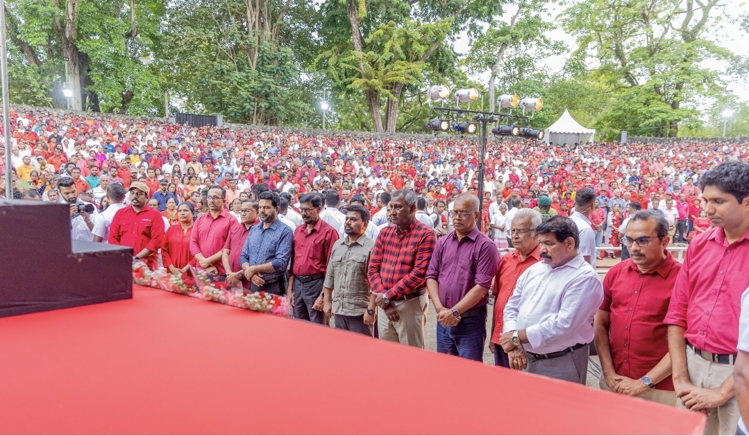 The event, led by President Dissanayake and JVP General Secretary Tilvin Silva, was held this afternoon at the Viharamahadevi Open Air Theatre in Colombo. Ceremonial tributes were paid as party members gathered to remember those who played a role in the movement’s history.