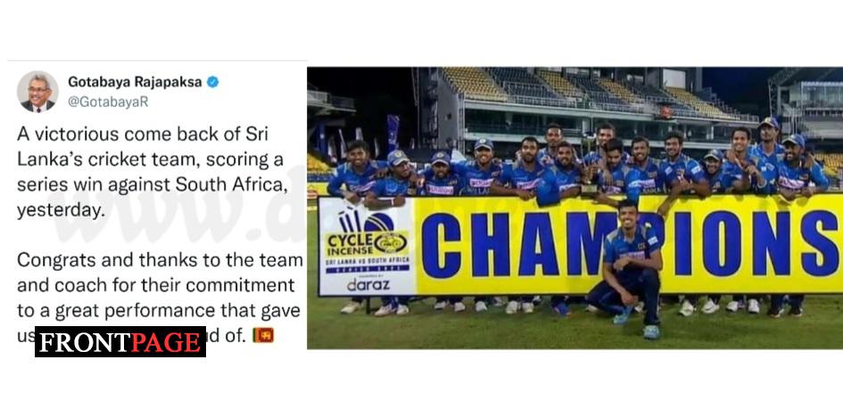“A victorious comeback of Sri Lanka’s cricket team, scoring a series win against South Africa. Congrats and thanks to the team and coach for their commitment to a great performance that gave us so much to be proud of,” the President tweeted.