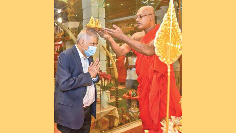 Thereafter, he offered flowers to the Buddha statue and participated in religious rituals at the Seemamalakaya of the Gangarama Temple.