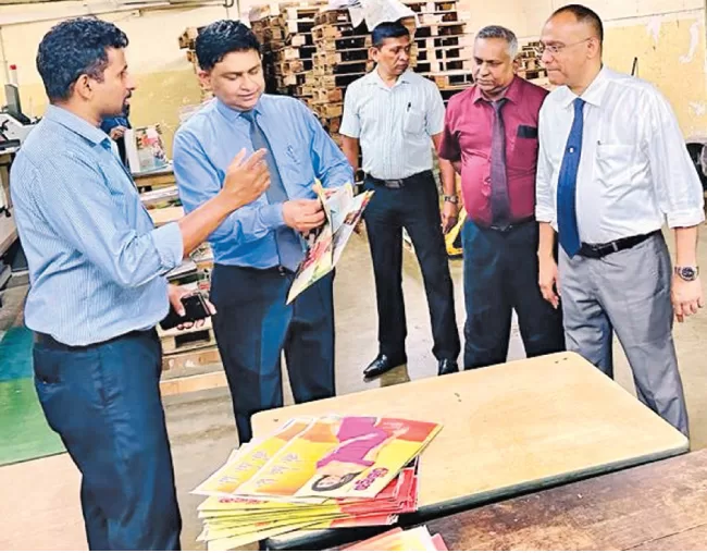 Public Trustee, former High Court Judge Gihan Pilapitiya made an observational visit to the Associated Newspapers of Ceylon Limited (Lake House) yesterday. Pilapitiya also met the ANCL Chairman Prof. Harendra Kariyawasam and the Board of Directors. Pilapitiya is seen observing the activities at the Commercial Printing Department with ANCL Chairman Prof. Harendra Kariyawasam.