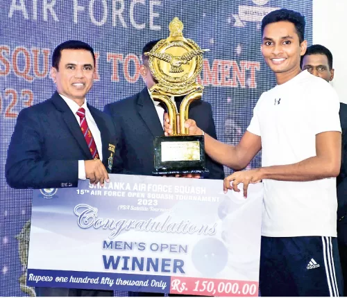 Ravindu Laksiri, a ten-time consecutive national champion, and Chanithma Sinaly, a three-time women’s national champion from Sirimavo Bandaranaike Vidyalaya, proudly lifted the Air Force Squash Championship. Notably, foreign players also participated in this year’s tournament.