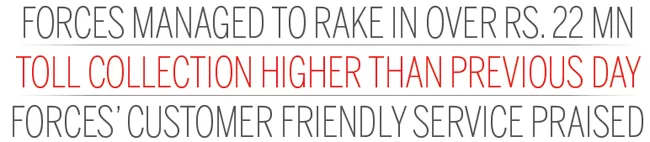 He said that the friendly service of the Security Forces personnel was highly praised by the highway users and said that their service was highly appreciated in the social media and other media as well. He further said that although charging highway users began two hours later after the strike action commenced on November 22, the same income as the previous day was collected. The officer further said that with the launching of trade union strike action, the Security Forces were immediately called upon the instructions of Transport, Highways and Mass Media Minister Dr. Bandula Gunawardhana, and accordingly, collection of revenue from highway users began two hours later and it was still possible to earn a similar amount of revenue compared to the previous days.