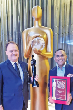 Chief Operating Officer (COO) Philip Logan and Senior Vice President Perkin Rocha of Royal Orchid Hotels with the award at Hyatt Regency in New Delhi.