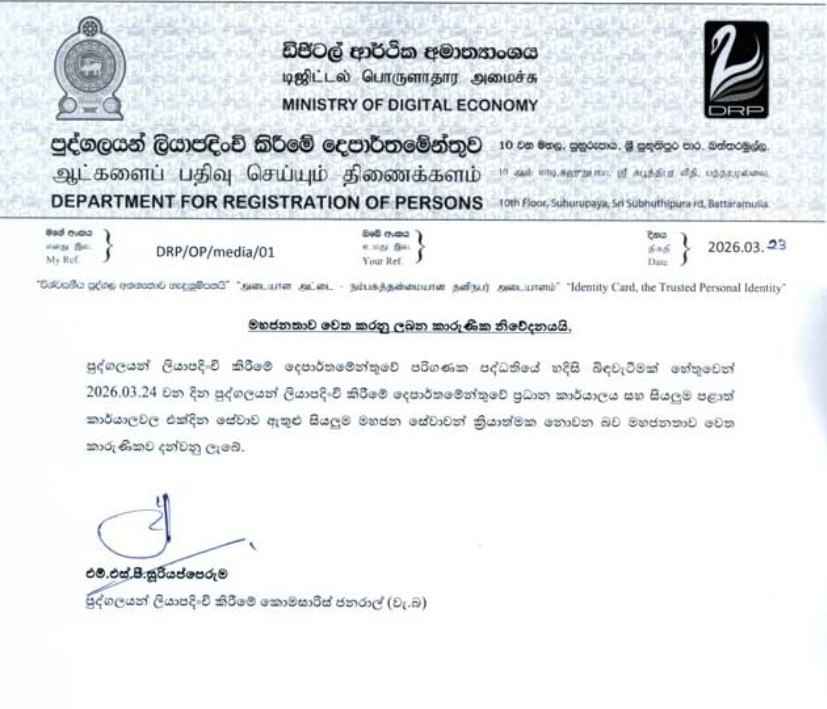 Registrar General’s Department services suspended on Tuesday (24) after system failure