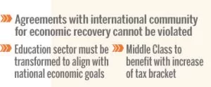 Our creditors have agreed to provide debt relief up to about 10 billion USD. The IMF agreement gave us USD 2.9 billion over three years. Together with the USD 10.5 billion benefit, this aids us significantly, but we must meet the targets. This is why we have introduced the Economic Transformation Bill.