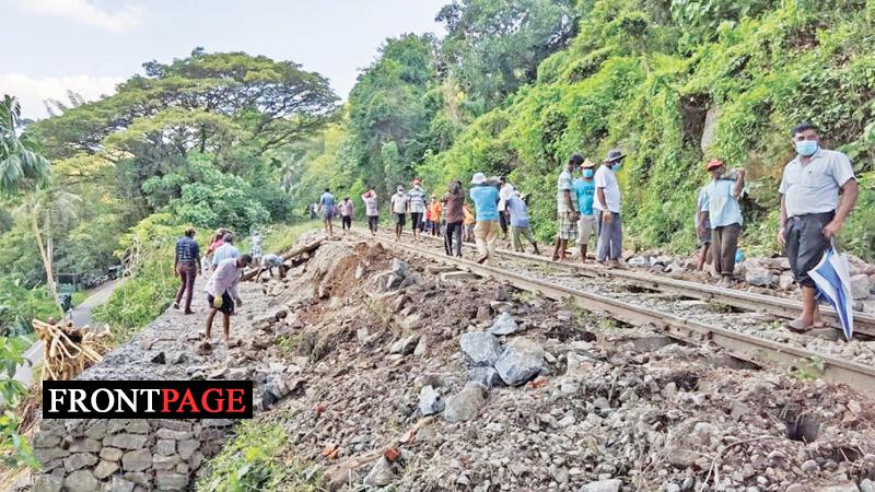 Train services between Colombo Fort and Kandy were disrupted due to minor landslides in several area between Rambukkana and Kandy following the heavy downpour experienced in the Central parts of the country for several weeks. Sri Lanka Railway employees restoring the damaged rail track from Rambukkana to Balana. Picture by Wimal Karunatillake.