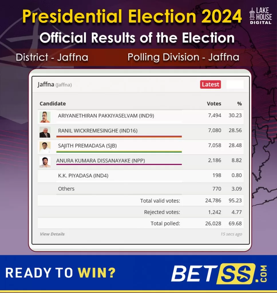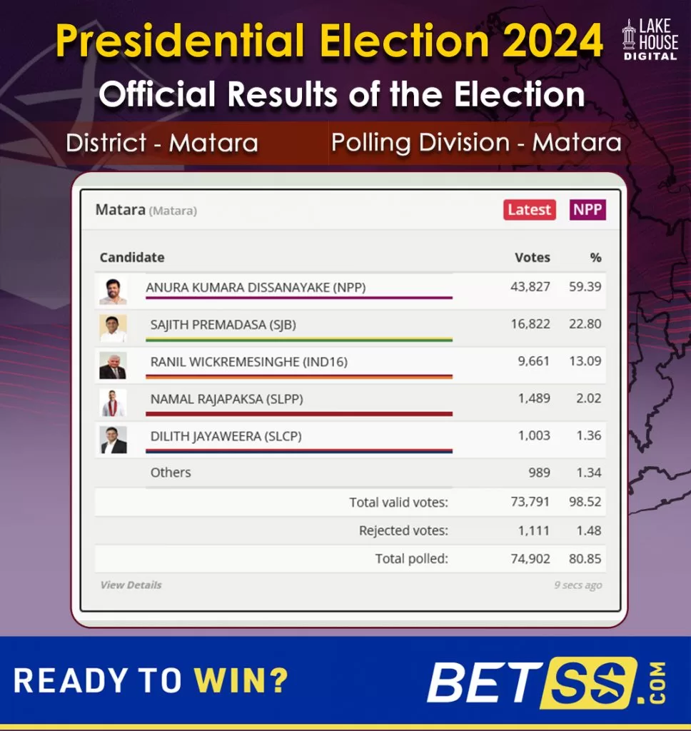 Results of Ambalangoda, Jaffna, Matara polling division Politics On Sep 21, 2024 FB IMG 1726960748738 968x1024 1 0 0 Share The post Results of Ambalangoda, Jaffna, Matara polling division appeared first on DailyNews. 0 0 Share FacebookTwitterGoogle+ReddItWhatsAppPinterestEmail