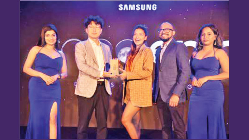 Samsung Electronics Sri Lanka launched Galaxy S23 and S23 Ultra many novel features. The first S-23 phone was handed over to artiste Romaine Wills by MD, Samsung Sri Lanka, SangHwa Song. See more on Page 14. Picture by Wimal Karunatillike