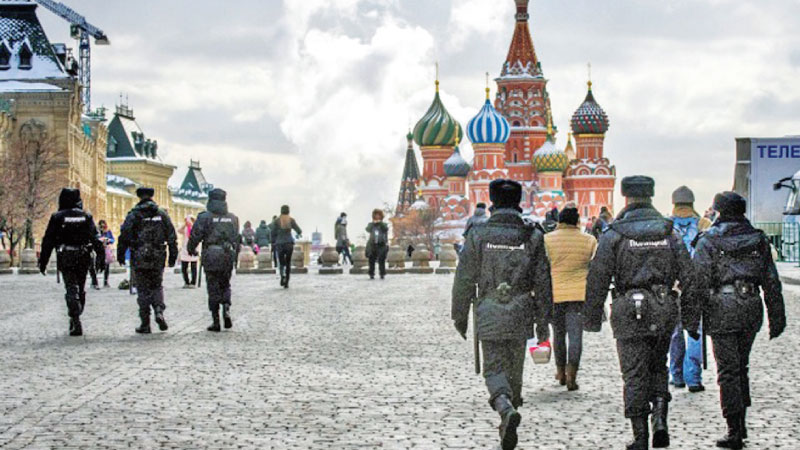 Red Square in front of St. Basil's Cathedral in Moscow.