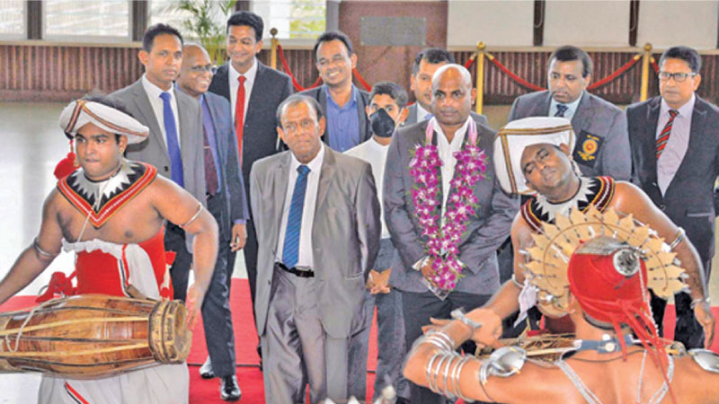 ‘School cricket, a mixture  of good and bad’Chief Guest at the 42 Observer SLT Mobitel Schools Cricketer of the Mega Show last April, former Sri Lanka captain Sanath Jayasuriya being conducted to the venue by ANCL Chairman W. Dayaratne PC, along with ANCL Director Finance Janaka Ranatunga , Director Operations, Canishka Witharana, Acting General Manager Sumith Koteawala, Director Editorial Dharma Sri Kariyawasam, Master Ranauk Jayasuriya, Director Legal and Administration Rakhitha Abeygoonewardena, Editor-in-Chief of Sunday Observer Dinesh Weerawansa and Manager Channel Publicity Chanaka Liyanage.