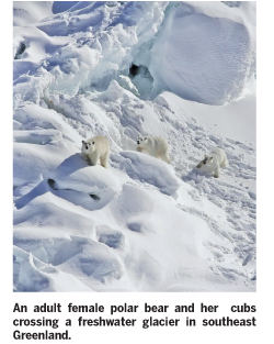 GREENLAND: Polar bears face an existential threat from the rapid decline of Arctic sea ice, which they rely on as platforms to hunt seals.