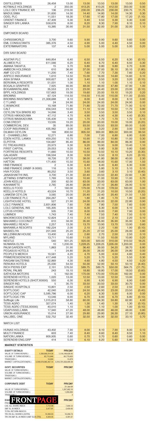 Share Market Statistics on 20.07.2022 Business On Jul 20, 2022 Share Market Statistics on 20.07.2022 0 99 Share Business Tags: Print Edition Thursday, July 21, 2022 – 01:00 0 99 Share FacebookTwitterGoogle+ReddItWhatsAppPinterestEmail