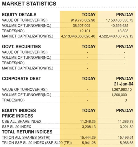 Shares-Colombo Stock Exchange (Market Statistics on 12.09.2023 ) Business On Sep 12, 2023 Untitled 14 3 0 8 Share The post Shares-Colombo Stock Exchange (Market Statistics on 12.09.2023 ) appeared first on DailyNews. 0 8 Share FacebookTwitterGoogle+ReddItWhatsAppPinterestEmail