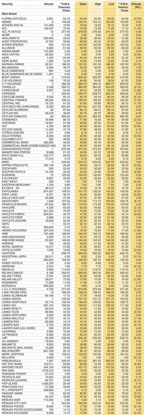 Shares-Colombo Stock Exchange ( Market Statistics on 12.12.2023 ) Business On Dec 12, 2023 Untitled 26 5 0 8 Share The post Shares-Colombo Stock Exchange ( Market Statistics on 12.12.2023 ) appeared first on DailyNews. 0 8 Share FacebookTwitterGoogle+ReddItWhatsAppPinterestEmail