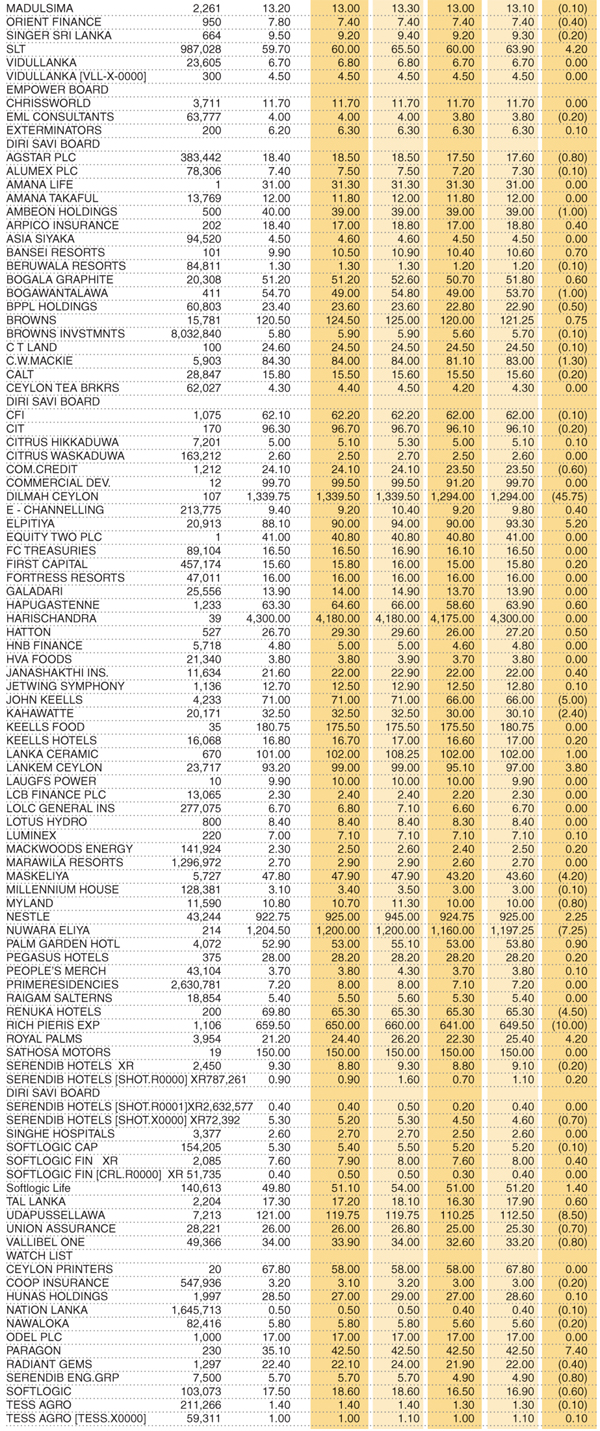 Shares – Colombo Stock Exchange ( Market Statistics on 14.11.2022 ) Business On Nov 14, 2022 Untitled 1 1 0 68 Share Business Tags: Print Edition Shares – Colombo Stock Exchange Tuesday, November 15, 2022 – 01:00 0 68 Share FacebookTwitterGoogle+ReddItWhatsAppPinterestEmail