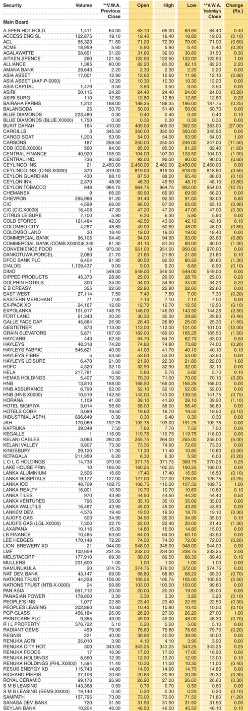 Shares-Colombo Stock Exchange ( Market Statistics on 14.12.2023 ) Business On Dec 14, 2023 Untitled 51 4 0 6 Share The post Shares-Colombo Stock Exchange ( Market Statistics on 14.12.2023 ) appeared first on DailyNews. 0 6 Share FacebookTwitterGoogle+ReddItWhatsAppPinterestEmail