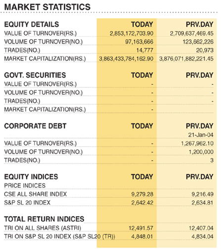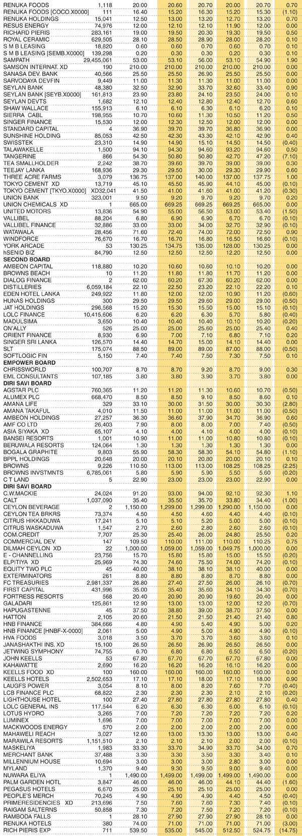 Shares – Colombo Stock Exchange ( Market Statistics on 15.06.2023 ) Business On Jun 15, 2023 Untitled 53 1 0 28 Share Business Tags: Print Edition Shares – Colombo Stock Exchange Friday, June 16, 2023 – 01:00 0 28 Share FacebookTwitterGoogle+ReddItWhatsAppPinterestEmail