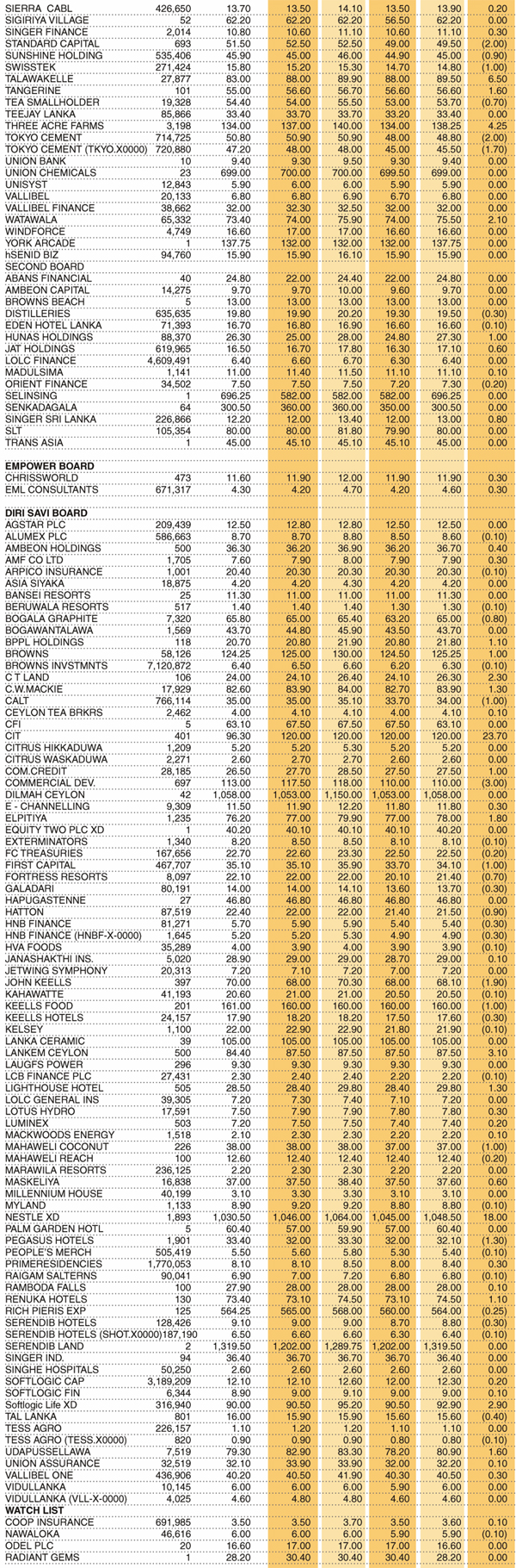 Shares – Colombo Stock Exchange ( Market Statistics on 16.03.2023 ) Business On Mar 16, 2023 Untitled 50 0 0 98 Share Business Tags: Print Edition Shares – Colombo Stock Exchange Friday, March 17, 2023 – 01:00 0 98 Share FacebookTwitterGoogle+ReddItWhatsAppPinterestEmail