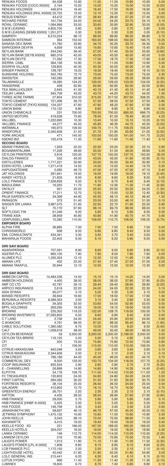 Shares-Colombo Stock Exchange ( Market Statistics on 18.11.2024 ) Business On Nov 18, 2024 Untitled 37 2 0 0 Share The post Shares-Colombo Stock Exchange ( Market Statistics on 18.11.2024 ) appeared first on DailyNews. 0 0 Share FacebookTwitterGoogle+ReddItWhatsAppPinterestEmail
