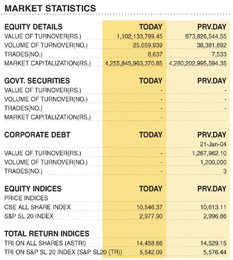 Shares-Colombo Stock Exchange ( Market Statistics on 20.11.2023 ) Business On Nov 20, 2023 Untitled 69 6 0 9 Share The post Shares-Colombo Stock Exchange ( Market Statistics on 20.11.2023 ) appeared first on DailyNews. 0 9 Share FacebookTwitterGoogle+ReddItWhatsAppPinterestEmail