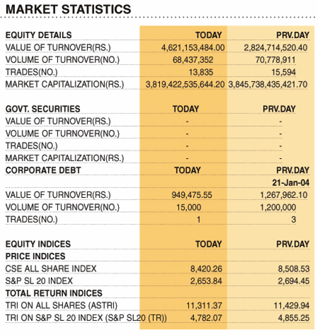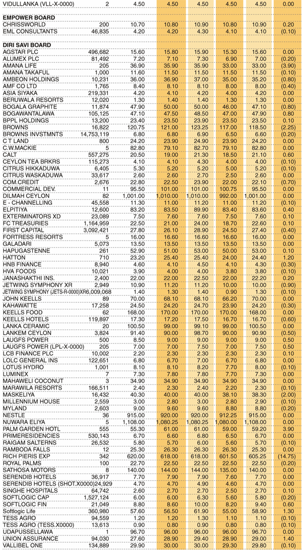 Shares – Colombo Stock Exchange ( Market Statistics on 21.12.2022 ) Business On Dec 21, 2022 Untitled 24 1 0 102 Share Business Tags: Print Edition Shares – Colombo Stock Exchange Thursday, December 22, 2022 – 01:00 0 102 Share FacebookTwitterGoogle+ReddItWhatsAppPinterestEmail