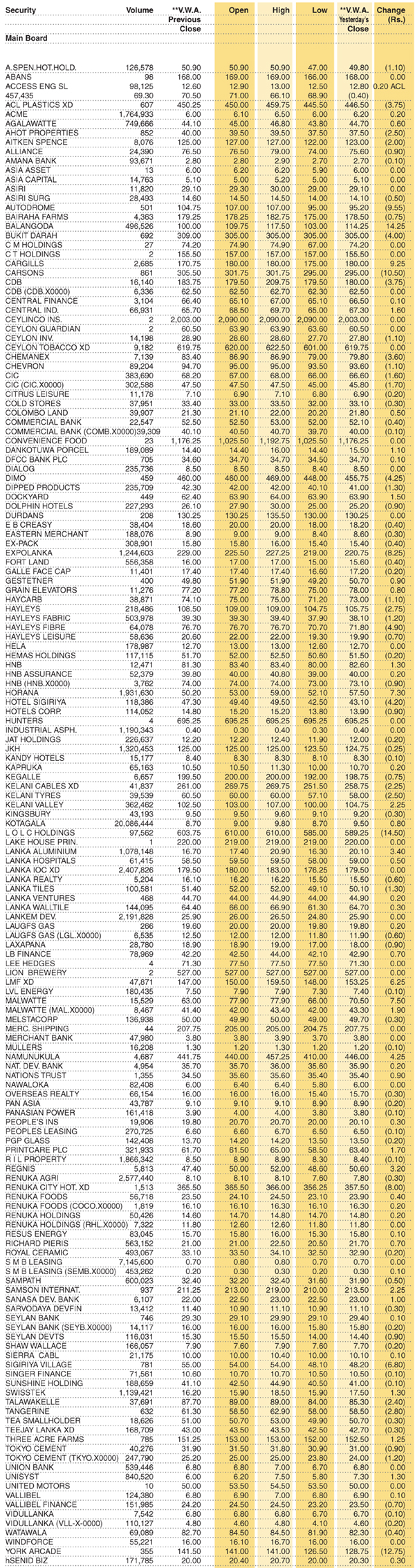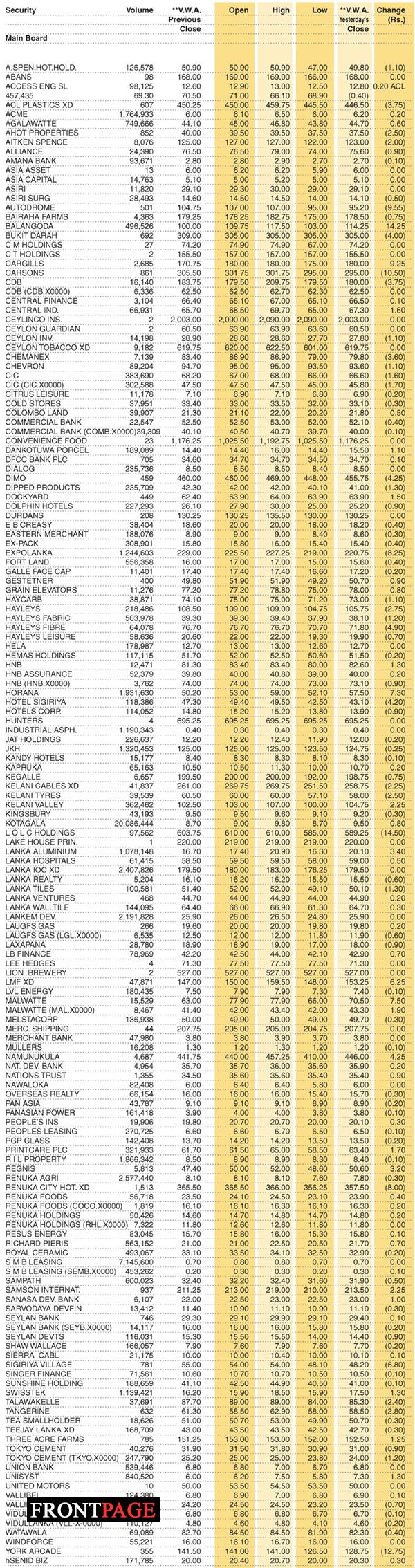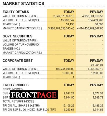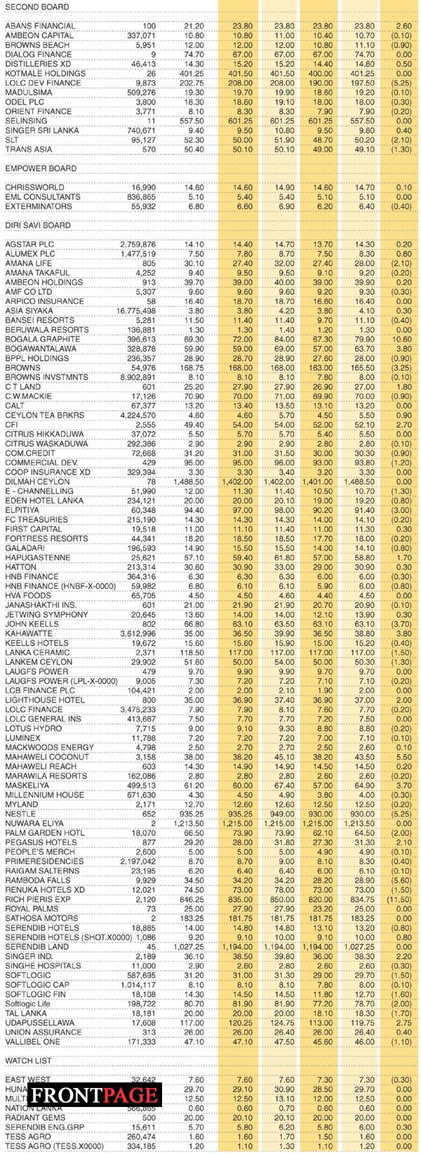 Shares – Colombo Stock Exchange ( Market Statistics on 24.08.2022) Business On Aug 24, 2022 Shares – Colombo Stock Exchange ( Market Statistics on 24.08.2022) 0 48 Share Business Tags: Print Edition Shares – Colombo Stock Exchange Thursday, August 25, 2022 – 01:00 0 48 Share FacebookTwitterGoogle+ReddItWhatsAppPinterestEmail