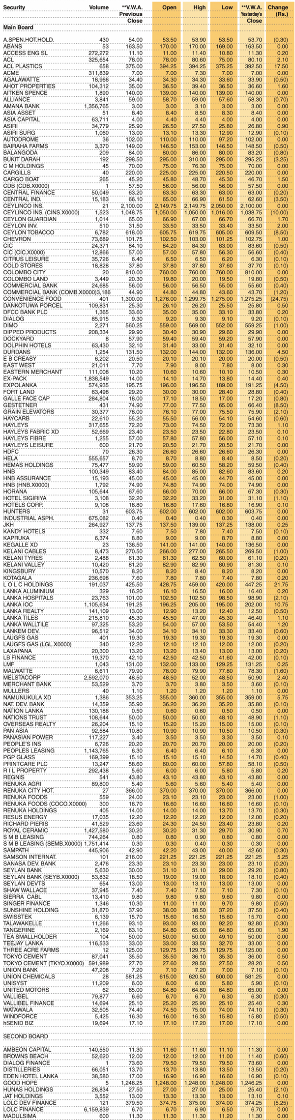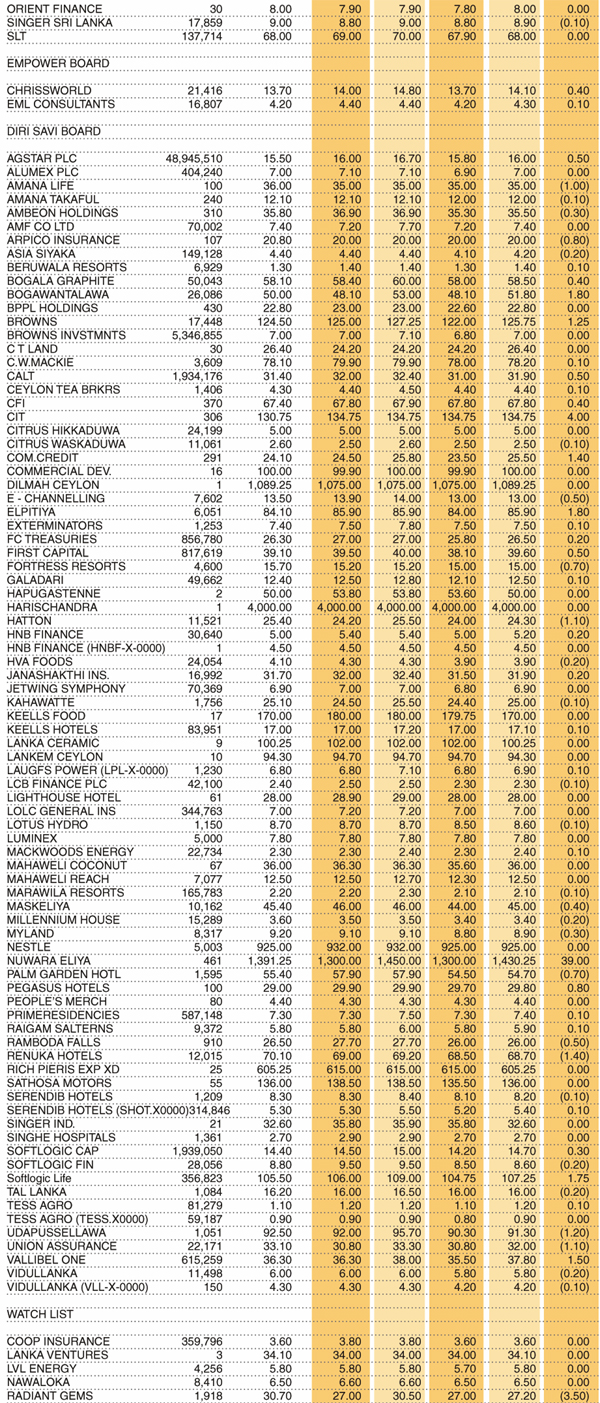Shares – Colombo Stock Exchange ( Market Statistics on 25.01.2023 ) Business On Jan 25, 2023 Untitled 66 3 0 77 Share Business Tags: Print Edition Shares – Colombo Stock Exchange Thursday, January 26, 2023 – 01:00 0 77 Share FacebookTwitterGoogle+ReddItWhatsAppPinterestEmail