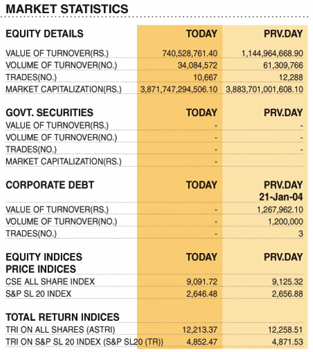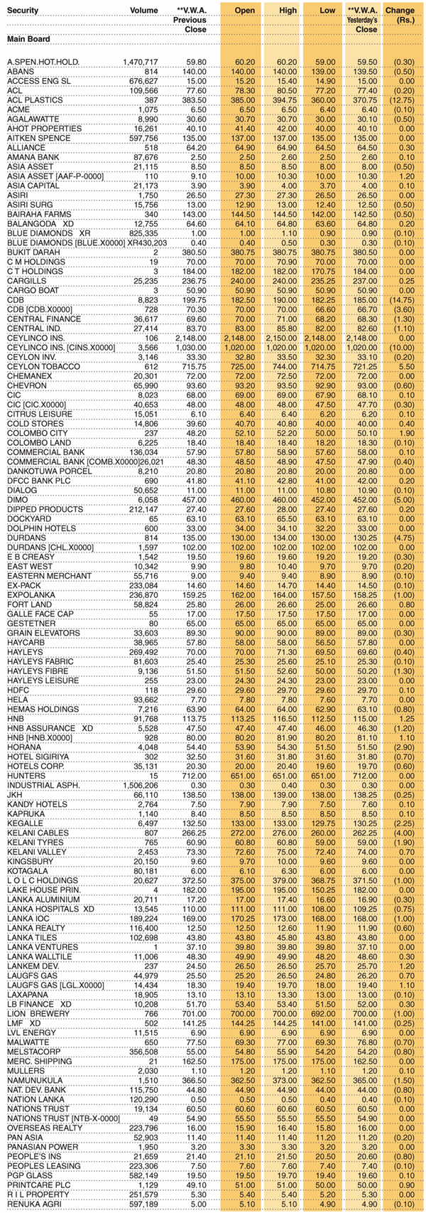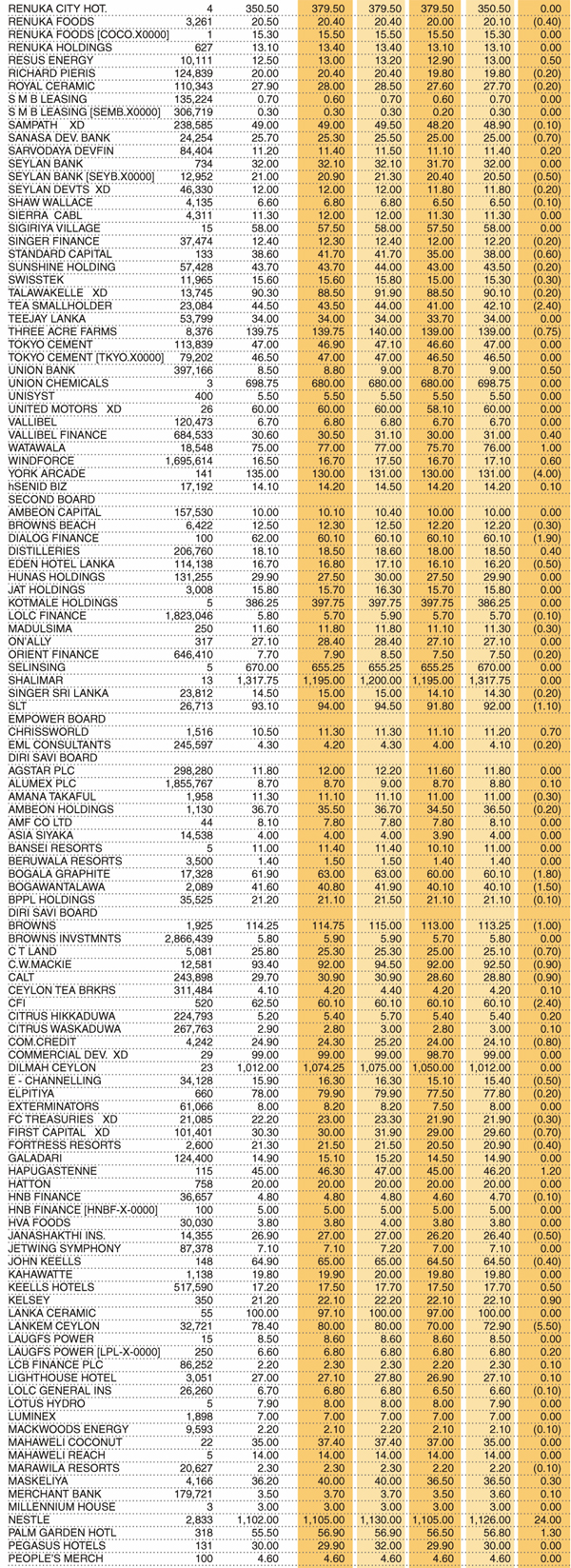 Shares – Colombo Stock Exchange ( Market Statistics on 26.04.2023 ) Business On Apr 26, 2023 unnamed file 0 52 Share Business Tags: Print Edition Shares – Colombo Stock Exchange Thursday, April 27, 2023 – 01:00 0 52 Share FacebookTwitterGoogle+ReddItWhatsAppPinterestEmail