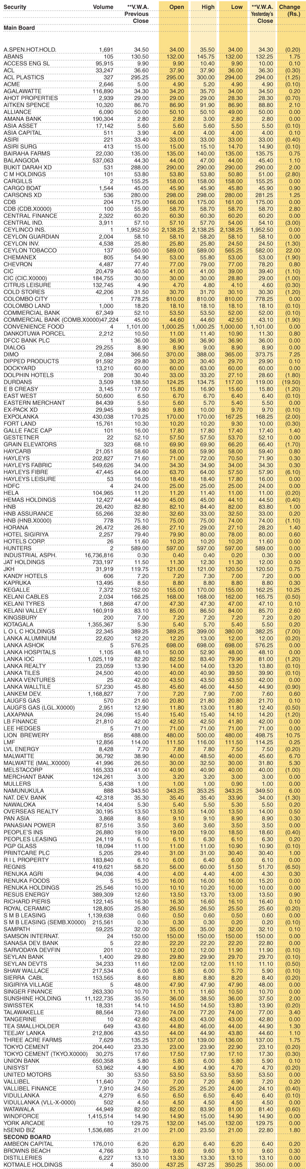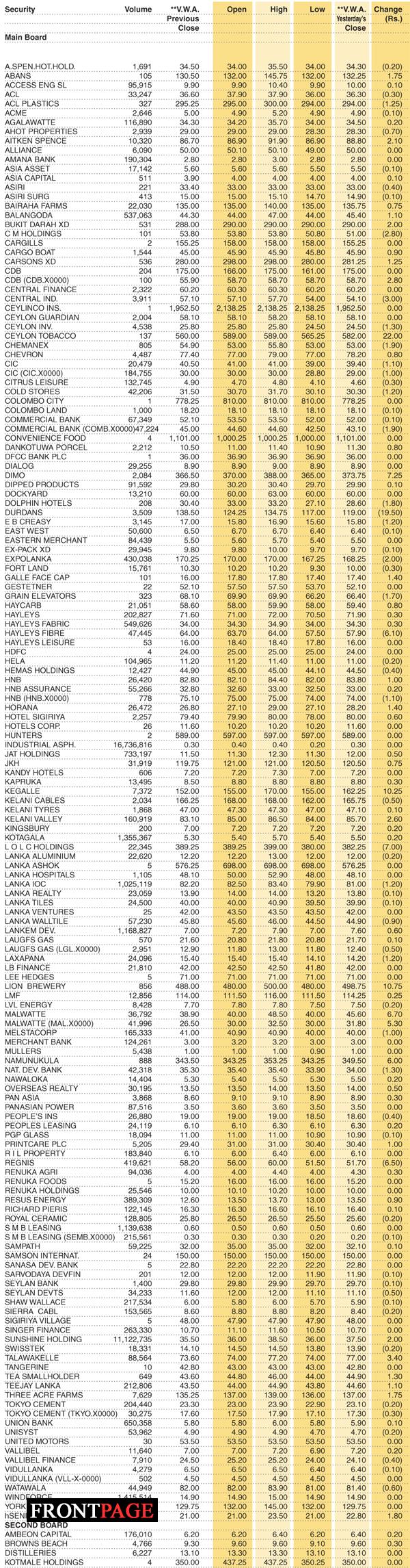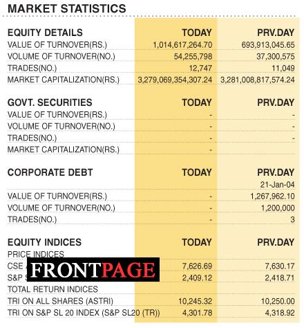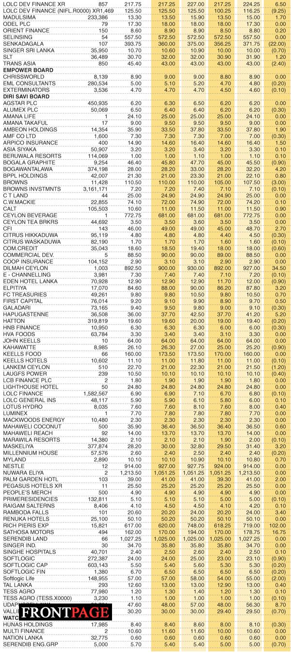Shares – Colombo Stock Exchange ( Market Statistics on 27.07.2022) Business On Jul 27, 2022 Shares – Colombo Stock Exchange ( Market Statistics on 27.07.2022) 0 45 Share Business Tags: Print Edition Shares – Colombo Stock Exchange Thursday, July 28, 2022 – 01:00 0 45 Share FacebookTwitterGoogle+ReddItWhatsAppPinterestEmail