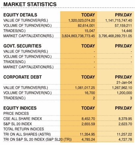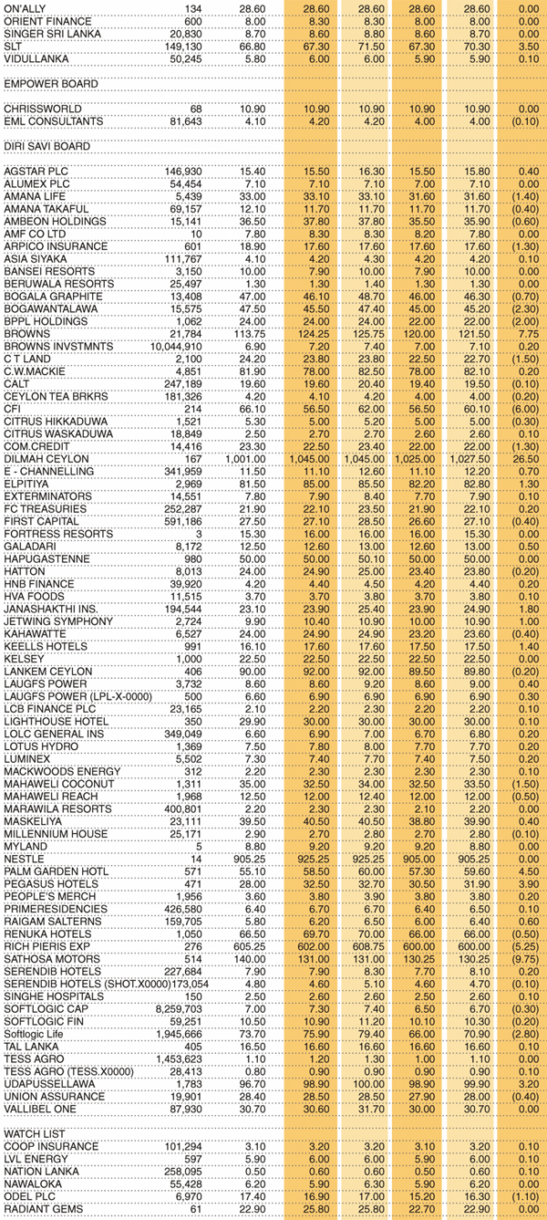 Shares – Colombo Stock Exchange ( Market Statistics on 27.12.2022 ) Business On Dec 27, 2022 Untitled 18 2 0 153 Share Business Tags: Print Edition Shares – Colombo Stock Exchange Wednesday, December 28, 2022 – 01:00 0 153 Share FacebookTwitterGoogle+ReddItWhatsAppPinterestEmail