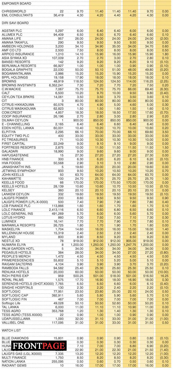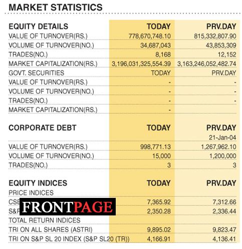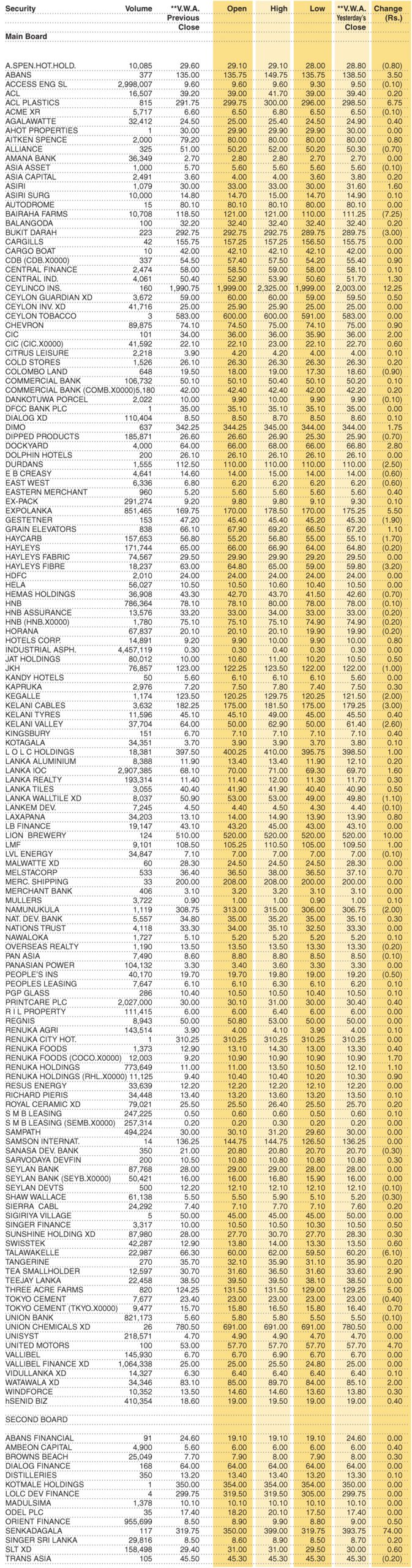 Shares – Colombo Stock Exchange ( Market Statistics on 29.06.2022) Business On Jun 29, 2022 0 49 Share Business Tags: Print Edition Shares – Colombo Stock Exchange Thursday, June 30, 2022 – 01:00 0 49 Share FacebookTwitterGoogle+ReddItWhatsAppPinterestEmail