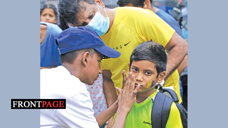 Here, a young Lankan fan being painted in Australian colours shortly before entering the R Premadasa Stadium. Picture by Hirantha Gunathilake