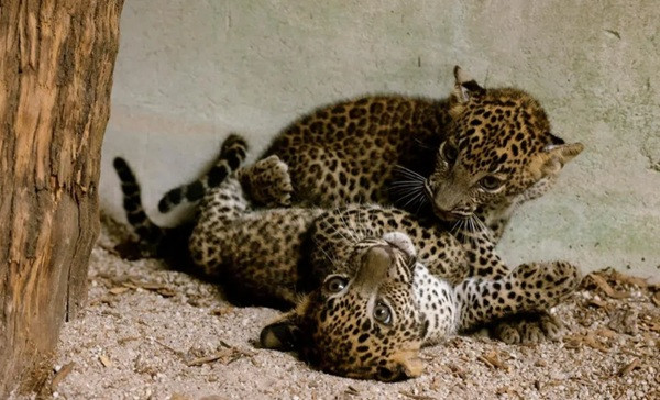 The triplets, which are the pair’s first litter, are among around 80 Sri Lankan leopards in zoos worldwide.