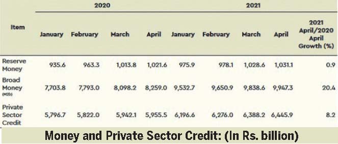 The private sector credit increased by 8.2% to Rs. 6,445.9 billion in end April reflecting the promotion of credit to the priority sectors such as micro, small and medium scale enterprises (MSMEs) of the economy. Credit to the public sector also increased by 17.1% to Rs. 1,093.4 billion in the first four months.