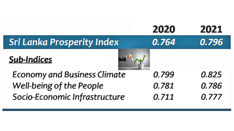 Sri Lanka Prosperity Index (SLPI), recorded an index value of 0.796 in 2021 with a slight increase compared to 0.764 recorded in 2020 when the economy was severely affected by the COVID-19 pandemic.