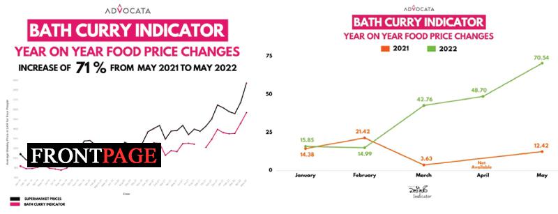 Advocata Institute’s Bath Curry Indicator (BCI), which tracks changes in the retail price of food, also recorded its highest ever increase of 71% from May 2021 to May 2022 and an increase of 13% over the past month.