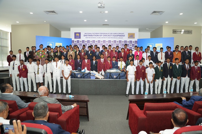 Sri Lanka Cricket today distributed cricket equipment to schools, clubs, and Sri Lanka Cricket’s District and Provincial squads.