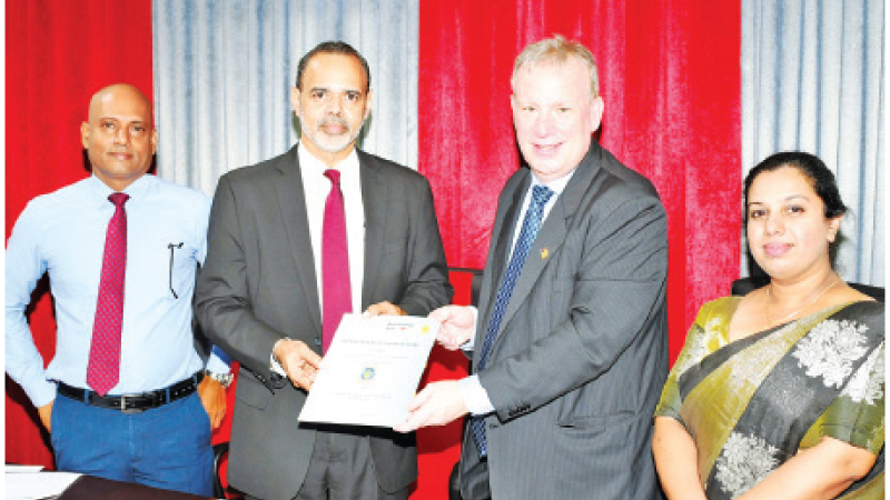 Chairman SLITHM, Shirantha Peiris, and Team Leader, S4IG David Ablett exchange the MoU