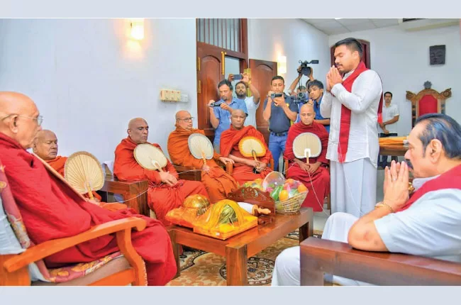 SLPP Presidential candidate Namal Rajapaksa received the blessings of the Mahanayake of Rammanya Nikaya Most Ven. Makulewe Sri Wimala Thera. Former President Mahinda Rajapaksa was also present