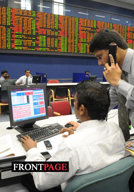 | Stock traders monitor prices at the Colombo Stock Exchange. |