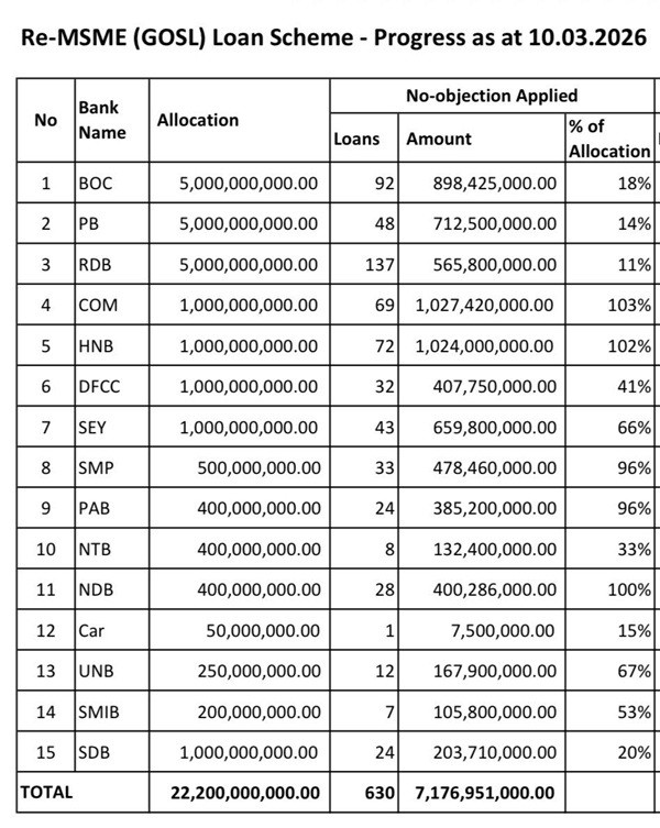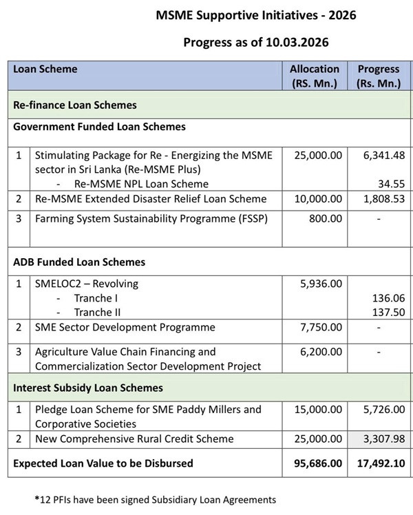By March, banks had processed 630 applications worth Rs. 7.2 billion, while the Loan Guarantee Institution approved 267 collateral-free loans. Overall progress under the scheme has reached Rs. 17.4 billion, with a total allocation of Rs. 95 billion earmarked for businesses.