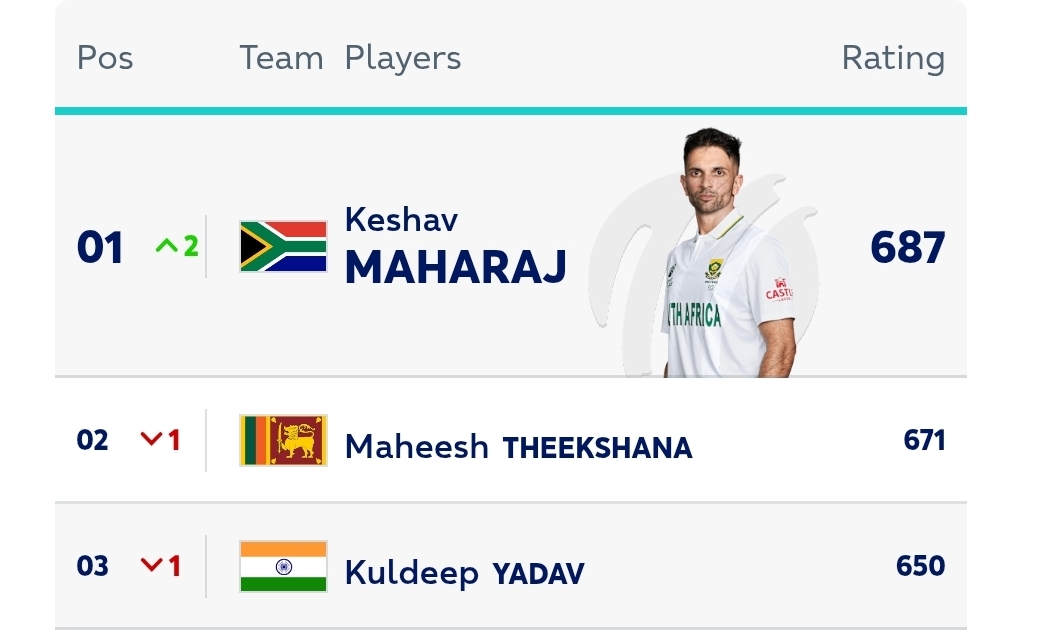 A new No.1 ODI bowler is crowned as South Africa’s Keshav Maharaj displaces Sri Lankan spinner Maheesh Theekshana at the top.