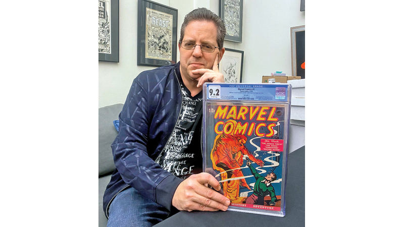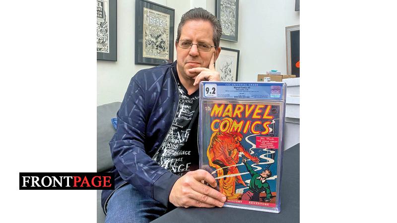Stephen Fishler, co-owner and CEO of ComicConnect.com, poses for a photo holding up a copy of Marvel Comics #1 in New York on Friday.