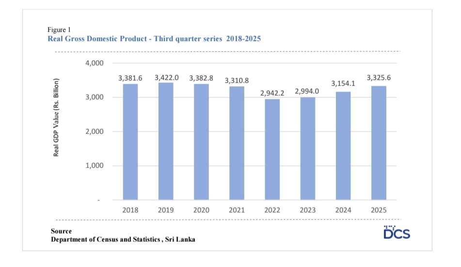 Sri Lanka’s economy grew by 5.4 percent in the third quarter of 2025, driven by positive performance across agriculture, industry and services, according to the Department of Census and Statistics .