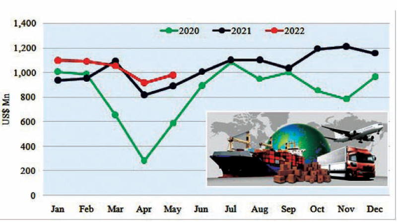 Earnings from the merchandise exports increased by 9.9 % y-o-y to US$ 980.2 million in May 2022 and this was mainly due to the increase in earnings from export of Apparel and Textiles, Coconut based products and Electrical & Electronic Components.